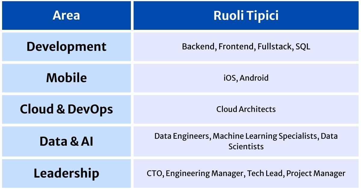 Copriamo l'intero stack tecnologico, con un focus particolare su profili ad alto impatto. Dai un'occhiata!